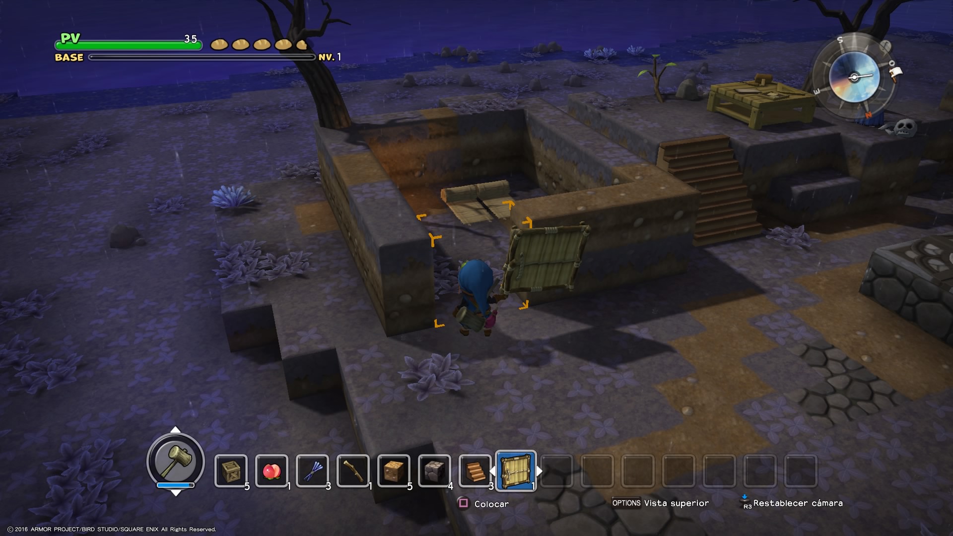 Square Enix utiliza esta excusa argumental para meternos en situación y presentar el héroe de la propuesta, al que podemos personalizar levemente al iniciar la campaña. Tras hacernos con los principios básicos de la jugabilidad de Dragon Quest Builders nos veremos libres en un entorno de obligada exploración, en el que iremos recogiendo nuevos ingredientes y aprendiendo nuevas recetas de construcción. Todo con el objetivo de mejorar una base a la que van llegando humanos que buscan refugio y que otorgan misiones y objetivos a nuestro protagonista para que avance la trama principal. Al principio tendremos un espacio limitado en nuestro inventario, pero al conseguir la receta del «cofre colosal» podremos ir acumulando objetos más ampliamente, siendo posible acceder a ellos en cualquier momento.