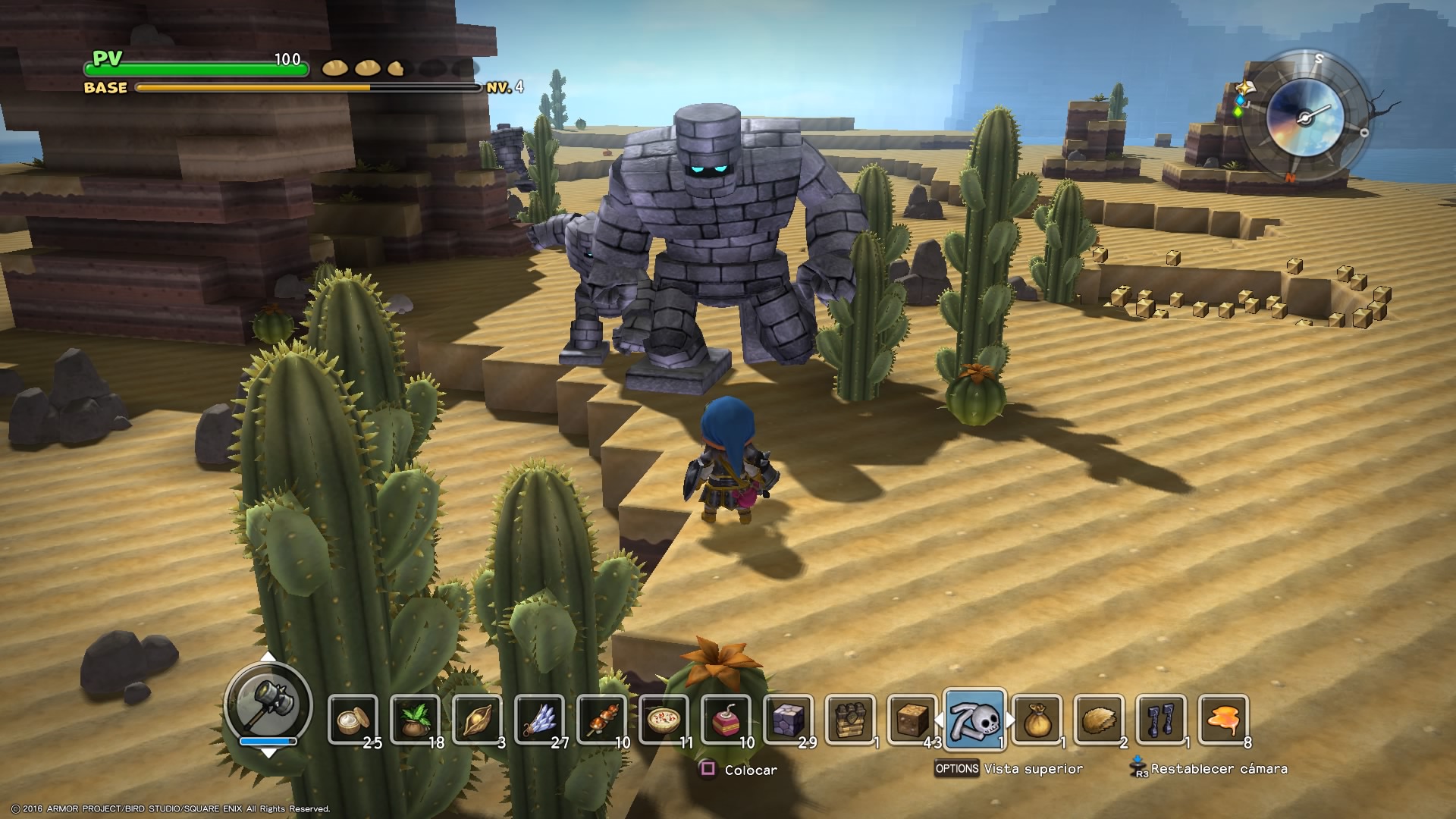 [DESTACADO=Los spin-off de Dragon Quest]Builders no es el primer juego de la saga Dragon Quest que se aleja del género RPG al que nos tiene acostumbrados. Ya vimos hace poco menos de un año como Dragon Quest Heroes apostaba por los multitudinarios combates del musou para ofrecer una aventura de acción sin contemplaciones. También hemos visto juegos como Theatrhythm Dragon Quest, en el que la música marcaba la jugabilidad, o Dragon Quest Heroes: Rocket Slime, donde los simpáticos limos tomaban el protagonismo. Builders es otro acercamiento diferente a la saga, ideal para celebrar los 30 años de vida de la misma.[/DESTACADO]Square Enix trae el título a Occidente varios meses después de su lanzamientos japonés, pero lo hace localizado al español. En Dragon Quest Builders no hay voces, por lo que todos los textos llegan traducidos, lo que resulta imprescindible para seguir la trama. Puede que el apartado sonoro y musical de la obra sea el punto flojo del conjunto, con melodías que terminan resultando repetitivas y efectos de sonido que poco tienen que decirnos, salvo la procedencia del ataque enemigo. Aunque todo este apartado encaja dentro de la propuesta, queda lejos del resto de elementos y únicamente hace acto de presencia para cumplir su función.