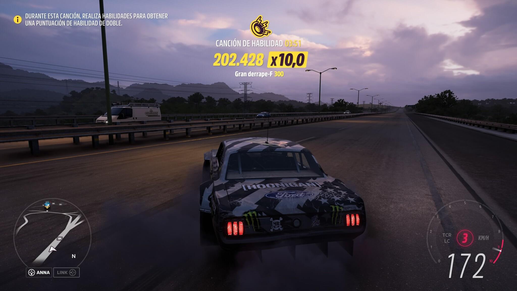Por último, tenemos los combos y habilidades, que no son un modo en sí sino una mecánica que estará en todos ellos, que es el acumular y combinar puntos por acciones a derrapar, saltar, romper decorado, adelantar, o ir a rebufo. Estos puntos nos darán además experiencia para subir de nivel, lo que nos dará ruletas y completar insignias. No es algo fundamental para avanzar, pero siempre gusta ver como sumas puntos por conducir de ciertas formas y hacer combinaciones.