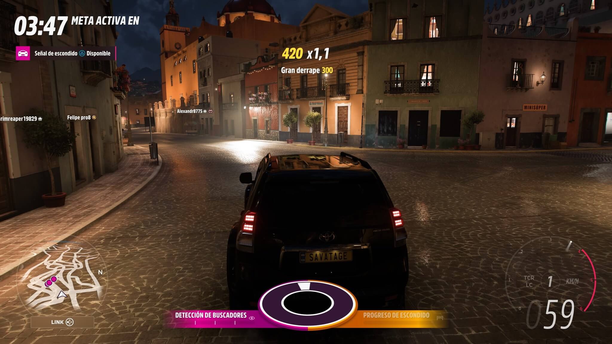 El otro añadido será El escondite, un modo online donde un jugador se hace pasar por coche del tráfico y esconderse mientras otros 5 tratan de encontrarlo siguiendo el radar y sospechando de él, haciendo que se llene una barra de descubrimiento cuanto más rato se mantengan cerca del escondido, que a su vez podrá usar una medida disuasoria que paralice a los rivales y se mantenga invisible varios segundos para volverse a esconder. Este modo puede recordar a lo que vimos en algún juego como los Assassin’s Creed Hermandad a Black Flag, pero adaptado a coches, resultando entretenido y curioso, aunque a veces desbalanceado por las facilidades que puede tener el jugador escondido de ir dando vueltas a toda velocidad por el exterior del mapa y lanzando ataques defensores cuando algún rival se acerque.