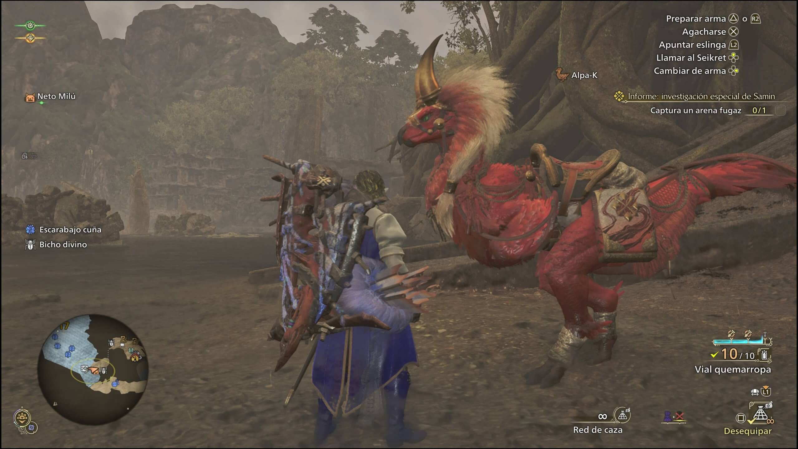 Otro elemento clave es la movilidad. El Seikret, una criatura que combina elementos de dinosaurio y ave, sustituye a los Palamutes de Monster Hunter Rise y mejora la exploración.