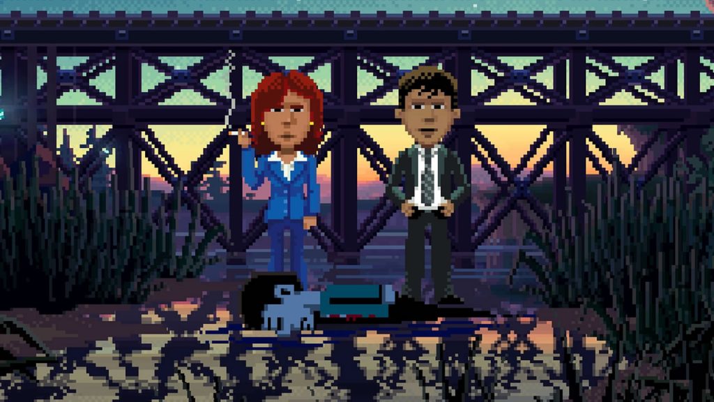Sí, es cierto, Laura Palmer no es la víctima que aparece bajo el puente de entrada a Thimbleweed Park, pero poco importa. El título nos lleva hasta 1987, cuando los agentes del FBI Ray y Reyes deben investigar la muerte de una persona en la otrora importante población. Las referencias evidentes a propuestas televisivas como la propia Twin Peaks, Expediente X o True Detective (mucho más moderna, pero igual de influyente), así como a juegos de la época, marcan el camino de una producción que no cesa en ningún momento de mirar al pasado, que basa toda su gracia en un guión repleto de chascarrillos y diálogos que Ron Gilbert y el resto del equipo de Terrible Toybox sabe gestionar con mucha gracia.