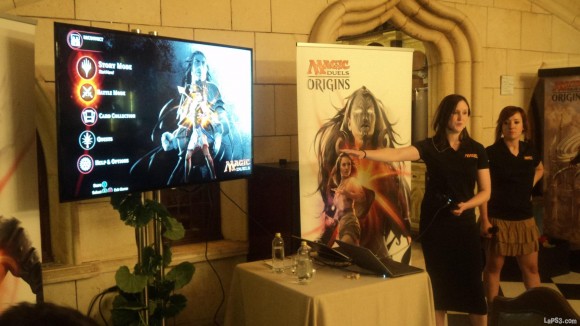 Para presentarnos Magic Duels: Orígenes, hemos contado con la presencia de Inés Alcolea (responsable de Magic España) y de Carly Drew (digital marketing manager de Magic) que han presumido de la vasta comunidad de usuarios que componen el universo Magic, de la libertad creativa y estratégica a la hora de construir nuestros mazos personalizados y en la difusión cultural internacional de la que hace gala esta serie, no sólo con su presencia en más de 7.000 encuentros sociales en tiendas especializadas de todo el mundo, sino también en la realización de macro eventos como los dos Grand Prix anuales y los conocidos Modern Masters Pro.