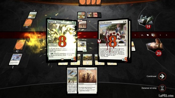 El sistema de combate es sencillo, incluso para aquellos que jamás hayan probado la experiencia Magic. Bajo una interfaz limpia, pero al mismo tiempo rica en detalles, tendremos un tablero bien diferenciado por partes, con la opción de ampliar el detalle de cada una de las cartas para conocerlas mejor. Este atractivo visual se ampara en un mayor elenco de animaciones que nos empujarán a realizar las partidas, a mejorar nuestros registros y a conseguir monedas para adquirir más cartas y hacernos aún más fuertes en el universo.