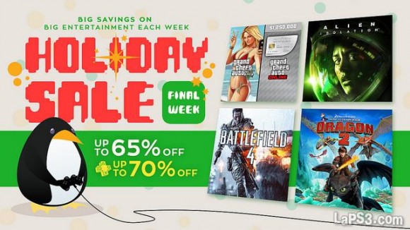 PlayStation América ha dado comienzo a la última semana de ofertas de Navidad con rebajas que afectan a las tres consolas actuales de la multinacional japonesa. Entre estas ofertas destacan algunas, como las referidas a Alien: Isolation, que cuenta con descuentos tanto en PlayStation 3 como en PlayStation 4. Lo mismo ocurre con Battlefield 4 en su versión más elemental. Aunque también encontramos rebajas que corresponden a títulos tan exitosos como Grand Theft Auto V para PS3 o Diablo III: Ultimate Evil Edition para PS4.