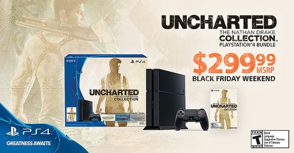 Se acerca muy fuerte el Black Friday y todas las compañías de videojuegos buscan cómo aprovechar este fin de semana para llenar de ofertas las tiendas. Sony Computer Entertainment America ha sido de las primeras en dar un paso al frente, anunciando este fantástico precio de 299$ para su pack de PlayStation 4 de 500GB más Uncharted: The Nathan Drake Collection:
