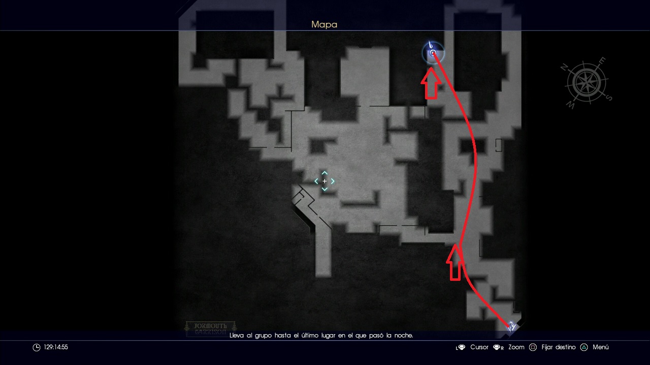 Ahora toca activar la parte final de lo que vamos a tratar en la guía: las mazmorras secretas (sí, quedan más). Ve al Cuartel de la Liga Medacio (al noroeste) y verás que ha aparecido una marca de Encargo. Ezma te hará entrega de una llave y activará la Misión secundaria Amenazas durmientes en el reino luciense.