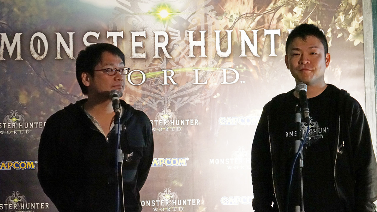 Fujioka Kaname y Yuya Tokuda, director ejecutivo y director de Monster Hunter:World, respectivamente, presentaron su nuevo título en Madrid donde, además de dar algunos detalles acerca de esta entrega a los medios especializados, tuvieron también ocasión de intercambiar sensaciones con fans de la famosa franquicia.