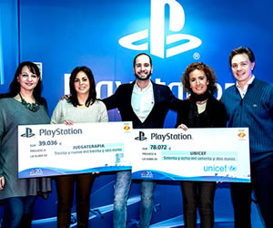 Esta mañana ha tenido lugar en Madrid la entrega de los cheques con el dinero recaudado en las subastas de la Edición 20 Aniversario de PS4. PlayStation España ha donado a UNICEF y a Juegaterapa un total de 117.108 euros, conseguidos gracias a las pujas que más de 4.000 personas hicieron para conseguir una de las 375 unidades de PS4 que había en España.