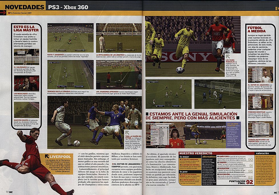Hombre un 92 de nota es muy alto,la verdad,porqué para mi el PES09 no se merecía ni un 80.pues yo recuerdo que el año pasado, decian que habia mejorado, pero que seguia con fallos tecnicos de ps2 y que no aportaba ninguna novedad, no lo dejaban demasiado bien....