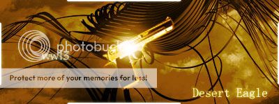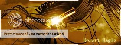 Lo siento sabadubi pero no me gusta, veo la firma muy vacia , quizás deberias haber puesto la Desert un poco mas grande y el foco de luz que sale de la Desert creo que le tapa muchos detalles que a todos nos gusta ver de ese pistolón y la font la veo muy simplona... jejeje