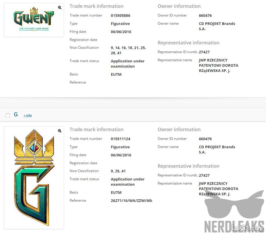 El universo The Witcher da para mucho, y una de sus partes que más fans ha arrastrado viene en su minijuego de cartas, el Gwent -o Gwynt como lo conocemos en español-. Los creadores de la prestigiosa saga de las aventuras de Geralt de Rivia, los estudios CD Projekt RED, acaban de registrar este dominio en las oficinas de patentes europeas, en la categoría videojuegos y entretenimiento, según destapa la web Nerdleaks con esta captura:
