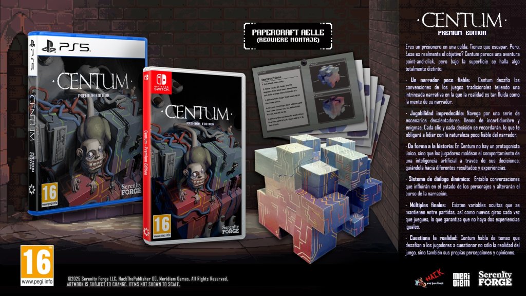 Serenity Forge y Meridiem Games han anunciado que la Edición Física Premium de Centum llegará a PS5 y Nintendo Switch en este año 2025. La edición incluye una figura de papel de Aelle, uno de los personajes de la historia.