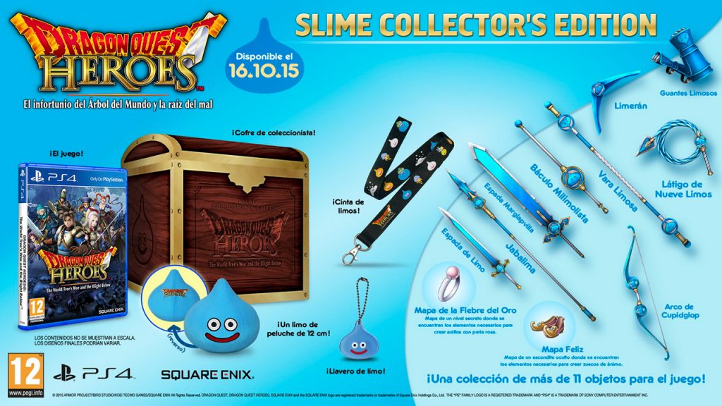 Square Enix ha confirmado que la Edición Coleccionista Slime de Dragon Quest Heroes: El Infortunio del Árbol del Mundo y la raíz del mal llegará finalmente a España. Este selecto pack traerá consigo una caja de coleccionista con forma de cofre del tesoro, un peluche, un llavero y una cinta de limos, así como hasta once objetos para usar en el propio juego.