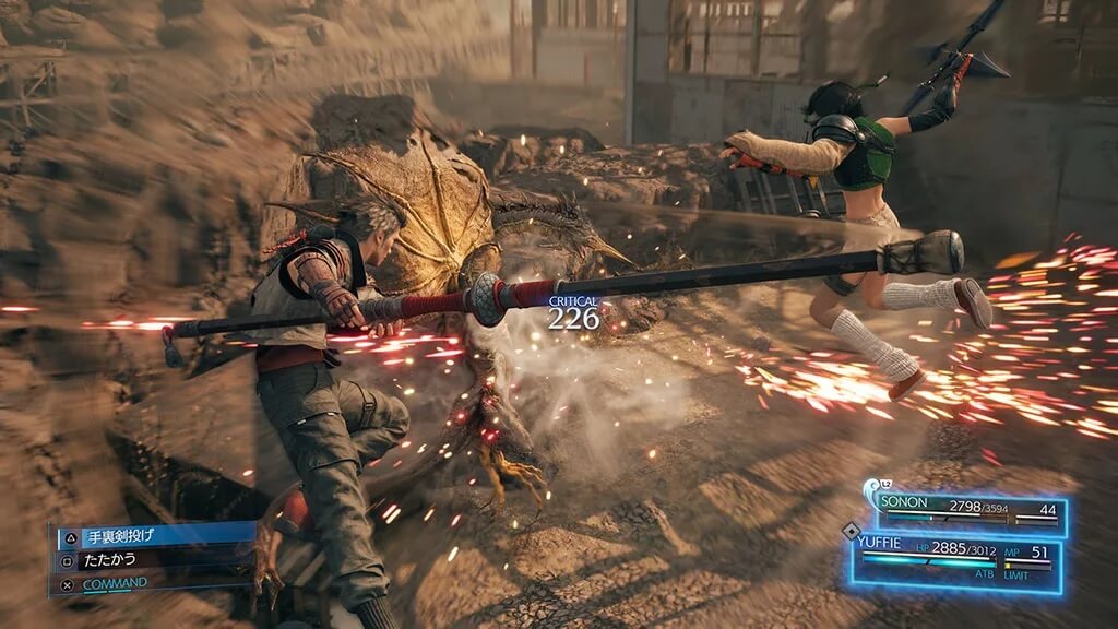 Seguidamente, en la publicación se desvelan nuevas capturas de Yuffie y Sonon en combate; destacando la importancia que tendrá la coordinación para hacer ataques cooperativos con ambos personajes y cómo la barra de Limit se cargará al recibir ataques enemigos para luego explotar con una poderosa habilidad.