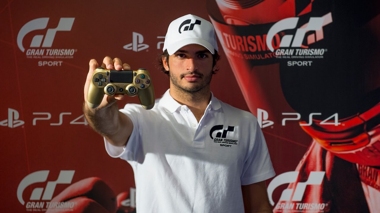 PlayStation España y Polyphony Digital anuncian, mediante nota de prensa, que el piloto de Fórmula 1 Carlos Sainz será el padrino de Gran Turismo Sport en España, convirtiéndose en la imagen de la esperada nueva entrega de la franquicia. Según explica la nota de prensa, Sainz ha colaborado con PlayStation España aportando sus conocimientos y experiencia al volante durante la fase beta del juego.