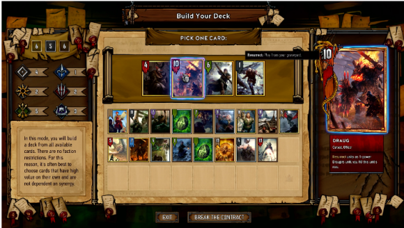 De acuerdo con la información revelada por CD Project RED, en Gwent Arena deberemos elegir 1 de cada 4 cartas que nos presente el juego para acabar formando una baraja con la que pelear.