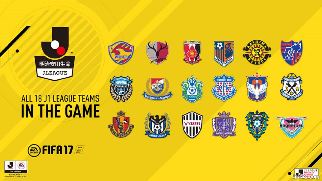 Todos los equipos contarán con la equipación oficial con la que juegan en la vida real y también estarán presentes en el modo Ultimate Team. Un estadio japonés, el Suita City Football Stadium (hogar del Gamba Osaka), también estará disponible como terreno de juego. Las 18 formaciones japonesas son las siguientes: