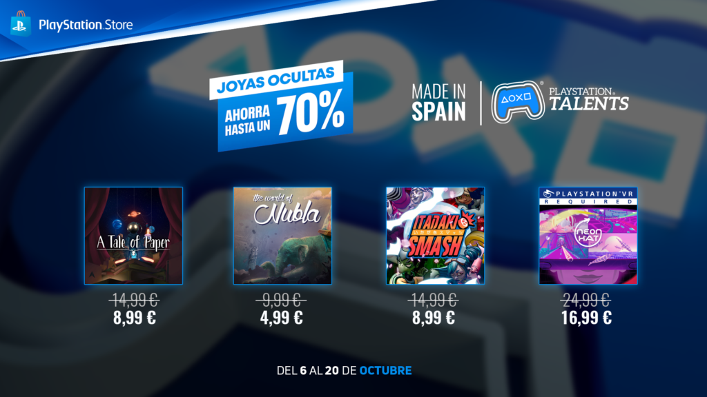 Esta selección incluye 19 títulos hechos en España y pertenecientes a la iniciativa PlayStation Talents como Neon Hat, el Mundo de Nubla o Holfraine.