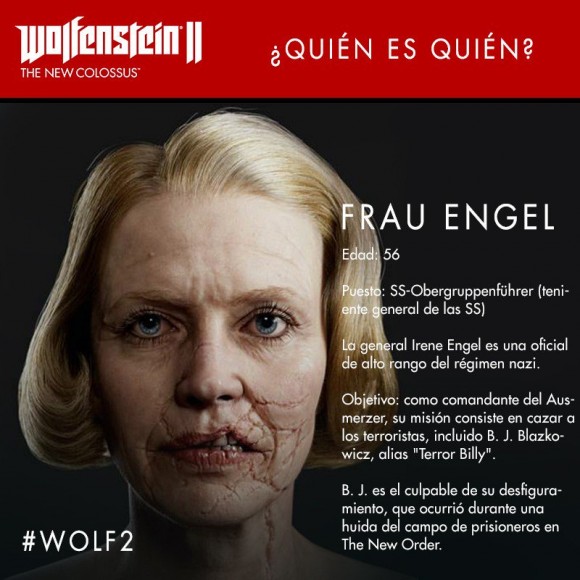 Bethesda ha distribuido una serie de infografías de Wolfenstein II: The New Colossus que nos permite saber más sobre los personajes secundarios que estarán presentes en la propuesta. El título recuperar a varios personajes de The New Order, a la vez que presenta nuevos aliados y enemigos. Podéis descubrirlos a continuación: