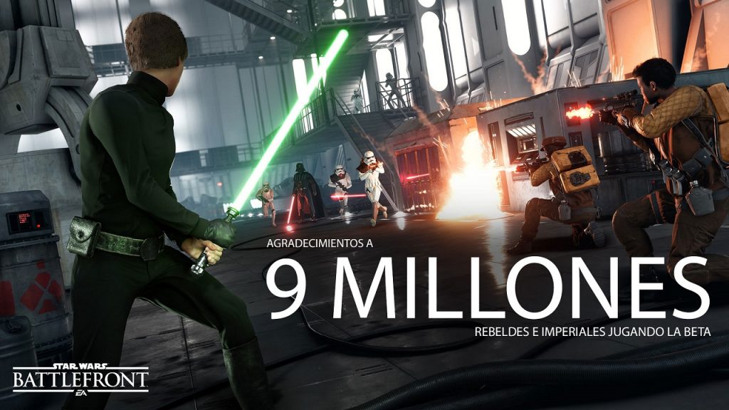 EA y DICE confirmaron recientemente que la beta de Star Wars Battlefront ha sido jugada por más de nueve millones de usuarios, por lo que se convierte en un éxito instantáneo y confirma las ganas que tienen los jugadores de poder hincarle el diente a esta producción centrada especialmente en su vertiente multijugador competitiva.