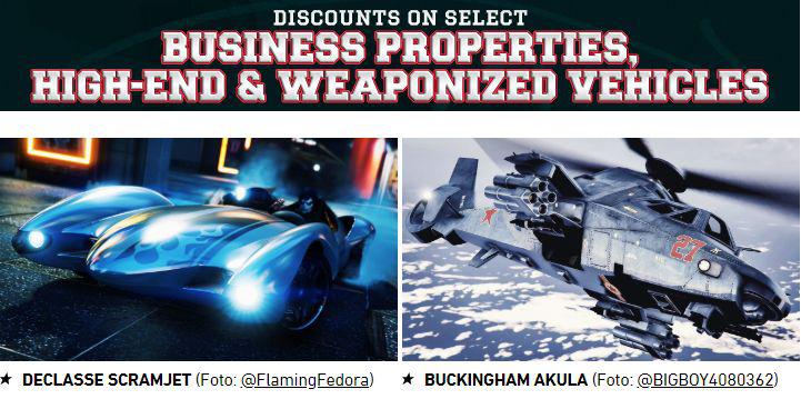Durante esta semana, los concesionarios de San Andreas están ofreciendo jugosos descuentos en una variedad de vehículos, como el Declasse Scramjet o el Buckingham Akula de camuflaje. Por si fuera poco, el Maze Bank Foreclosures también está ofreciendo descuentos de hasta un 40% en algunas propiedades de negocios. Aquí te dejamos la lista completa: