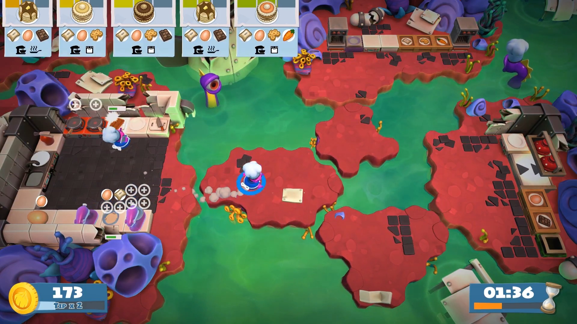 – Nuevas mecánicas de nivel: Overcooked 2 ha introducido mecánicas como el movimiento de pasillos, plataformas controlables y portales que te ayudarán a trasladarte.