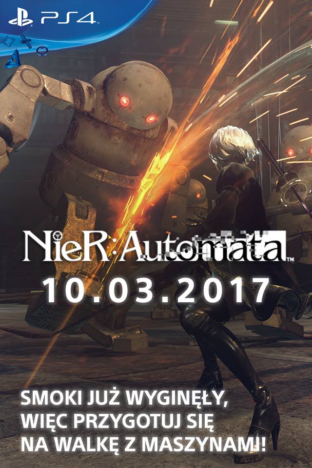 En el eslogan puede leerse: «Los dragones están extintos, preparaos para luchar contra las máquinas». La referencia a Scalebound es más que evidente y nos recuerda que aunque Platinum Games se haya visto obligada a cancelar este juego por parte de Microsoft, NieR: Automata sigue su camino como uno de los grandes exclusivos de PS4.