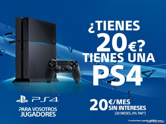 PlayStation España nos informa, mediante nota de prensa, que la promoción «¿Tienes 20€? Tienes una PS4» vuelve a estar operativa tras el éxito que tuvo el pasado año 2014. Hasta el próximo 21 de junio será posible hacerse con la más actual consola de sobremesa de Sony pagando 20 euros al mes (durante 20 meses) sin intereses de ningún tipo.