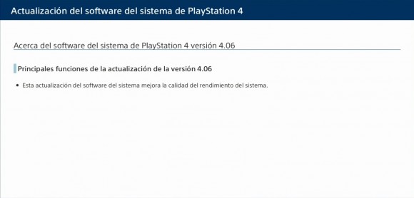 Según las notas detalladas de la actualización, la versión 4.06 del firmware de la consola mejora la calidad del rendimiento del sistema, sin entrar a ofrecer más detalles al respecto. Esta actualización menor de PS4 debería permitirnos disfrutar de una mayor estabilidad de la máquina, como otras actualizaciones recientes de la consola.