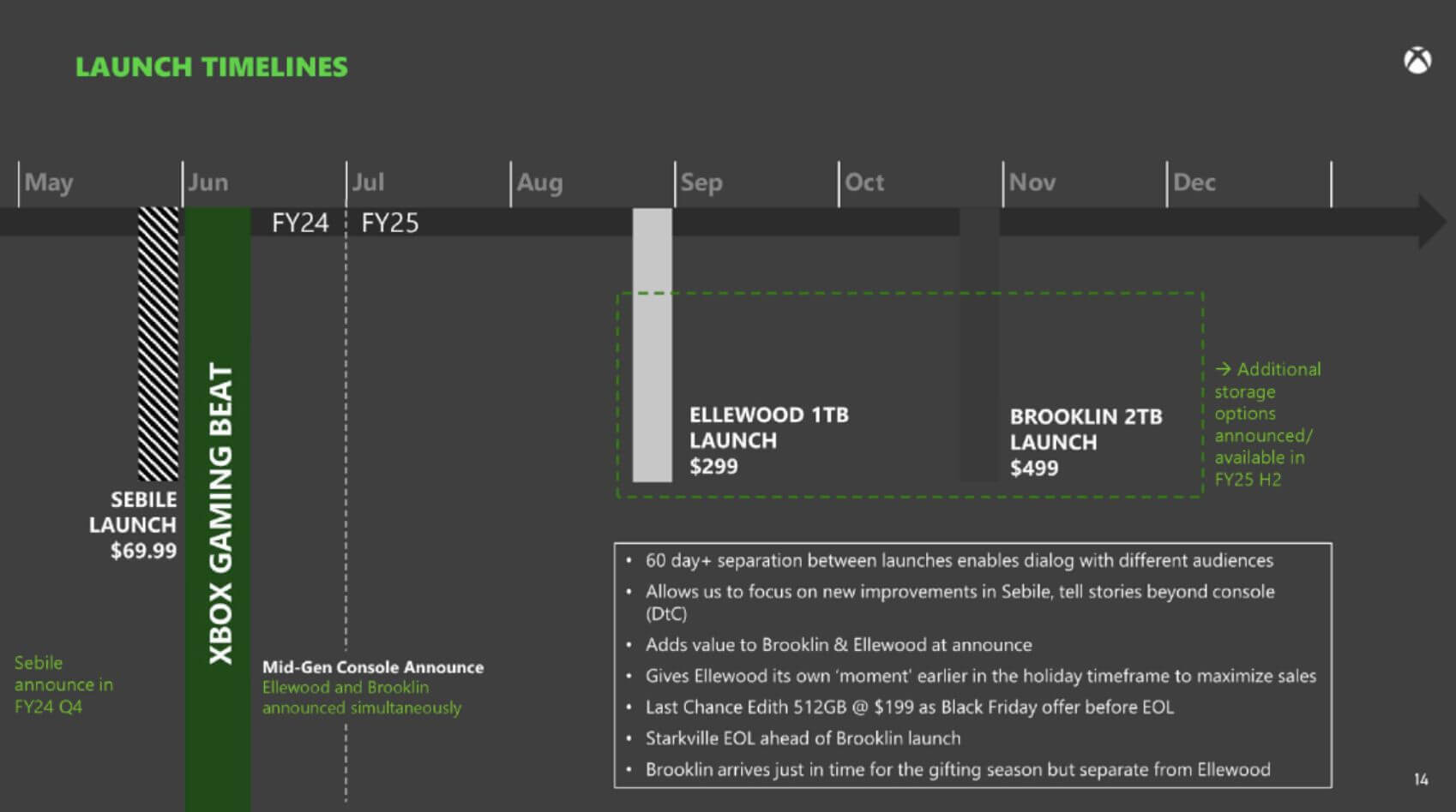 Su costo será de 499,99 euros y se planea que su lanzamiento será en julio-noviembre de 2024. Por su parte, la Xbox Series S también recibirá una nueva versión, llamada en clave Ellewood, con un TB de almacenamiento.
