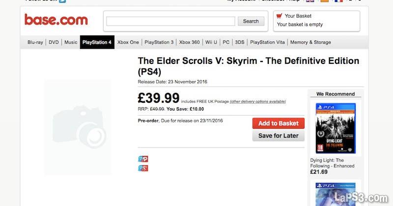 Sigue cogiendo fuerza un The Elder Scrolls V: Skyrim remasterizado y muy trabajado gráficamente para PS4 y Xbox One, ahora con esta tienda británica respaldando que el título se lanzará el próximo 23 de noviembre, en una edición a precio completo pero que incluiría todos los DLCs y contenidos adicionales del juegazo original, además de soporte para mods en consolas. La filtración, en caso de confirmarse esta fecha, la hace el anuncio de la cadena de tiendas Base.
