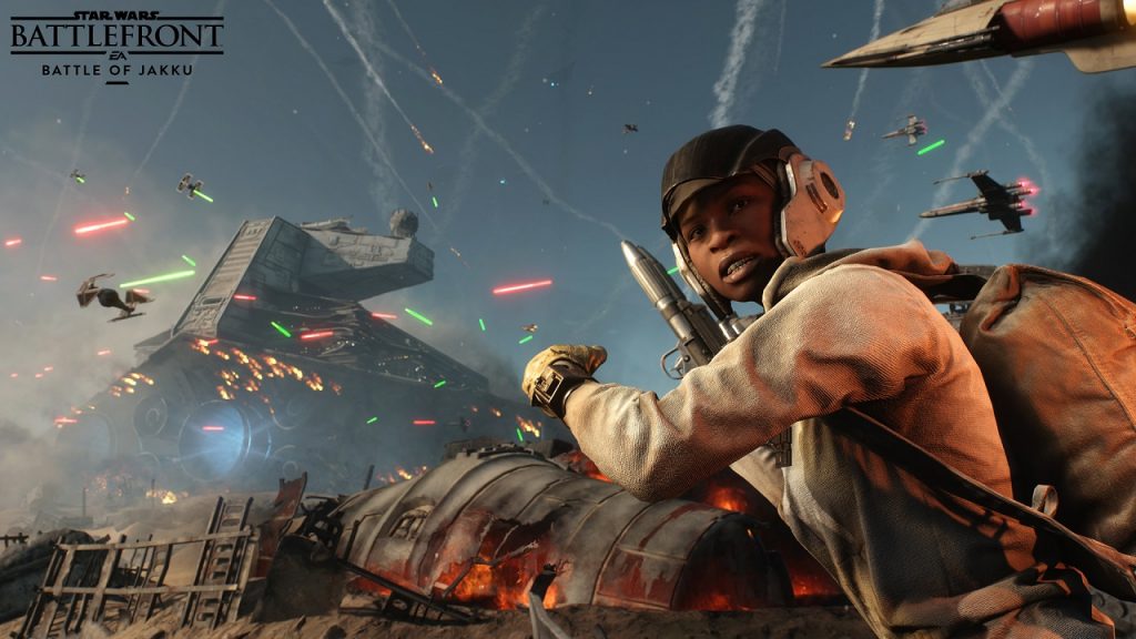 En la web oficial del juego puede leerse: «La batalla de Jakku transcurre 29 años antes de Star Wars: El despertar de la Fuerza como resultado de la victoria de los rebeldes en la batalla de Endor, un conflicto trascendental entre la Nueva República y una importante resistencia imperial en un remoto planeta desértico. La batalla de Jakku se creó gracias a la colaboración entre DICE y Lucasfilm, e incluirá dos mapas de Jakku y un nuevo modo, Punto de inflexión».
