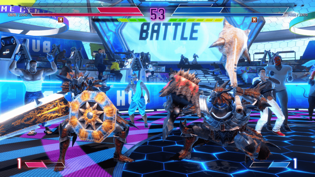 - Entra en combate en el Battle Hub, decorado con Monster Hunter y con tu música favorita del juego.
