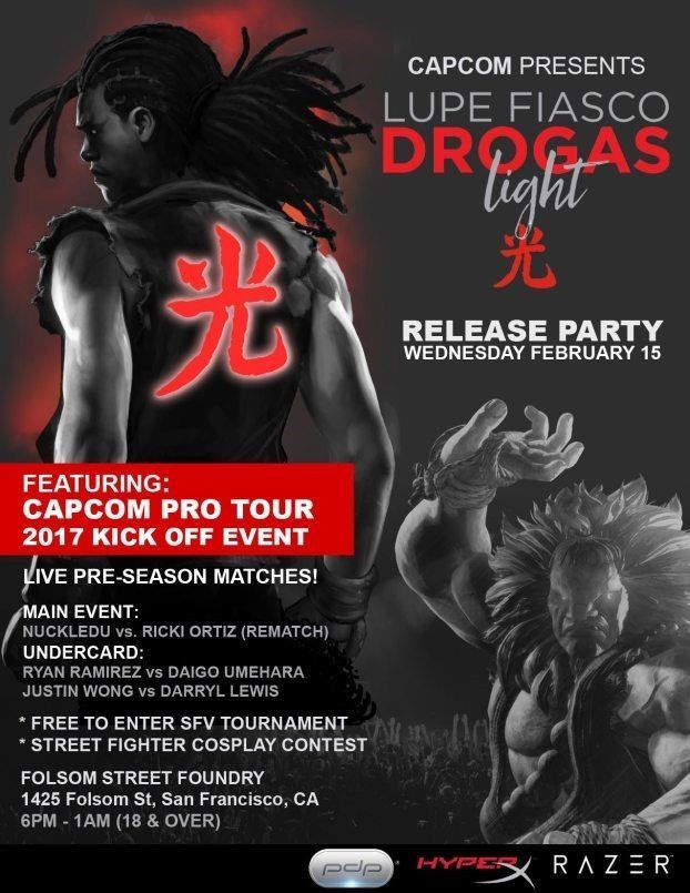 El evento tendrá lugar el próximo 15 de febrero, en el que tendrán lugar la presentación del nuevo disco de Lupe Fiasco (sí, se llama DROGAS light, curioso nombre), varios enfrentamientos entre profesionales y, por supuesto, la entrada al roster de este nuevo personaje para el juego de lucha.
