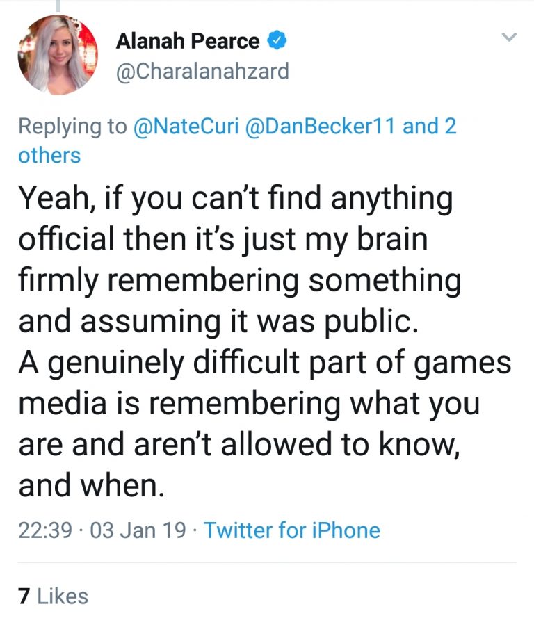 Estos tweets han sido borrados al darse cuenta la periodista de su error, pero nuestros compañeros de GamingBolthan conseguido recogerlos, por lo que os dejamos el enlace a su web para que podáis echarle un vistazo.